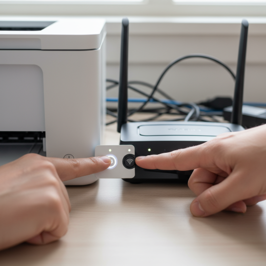 با استفاده از WPS (روش سریع): اگر روتر و پرینتر شما دکمه WPS دارند: