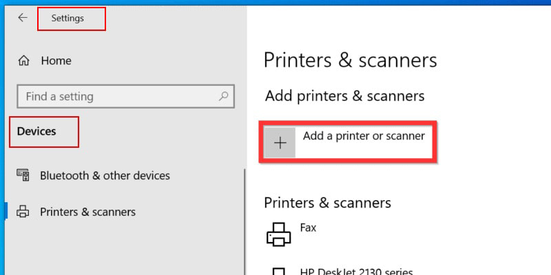 به بخش Bluetooth & devices و سپس Printers & scanners بروید.