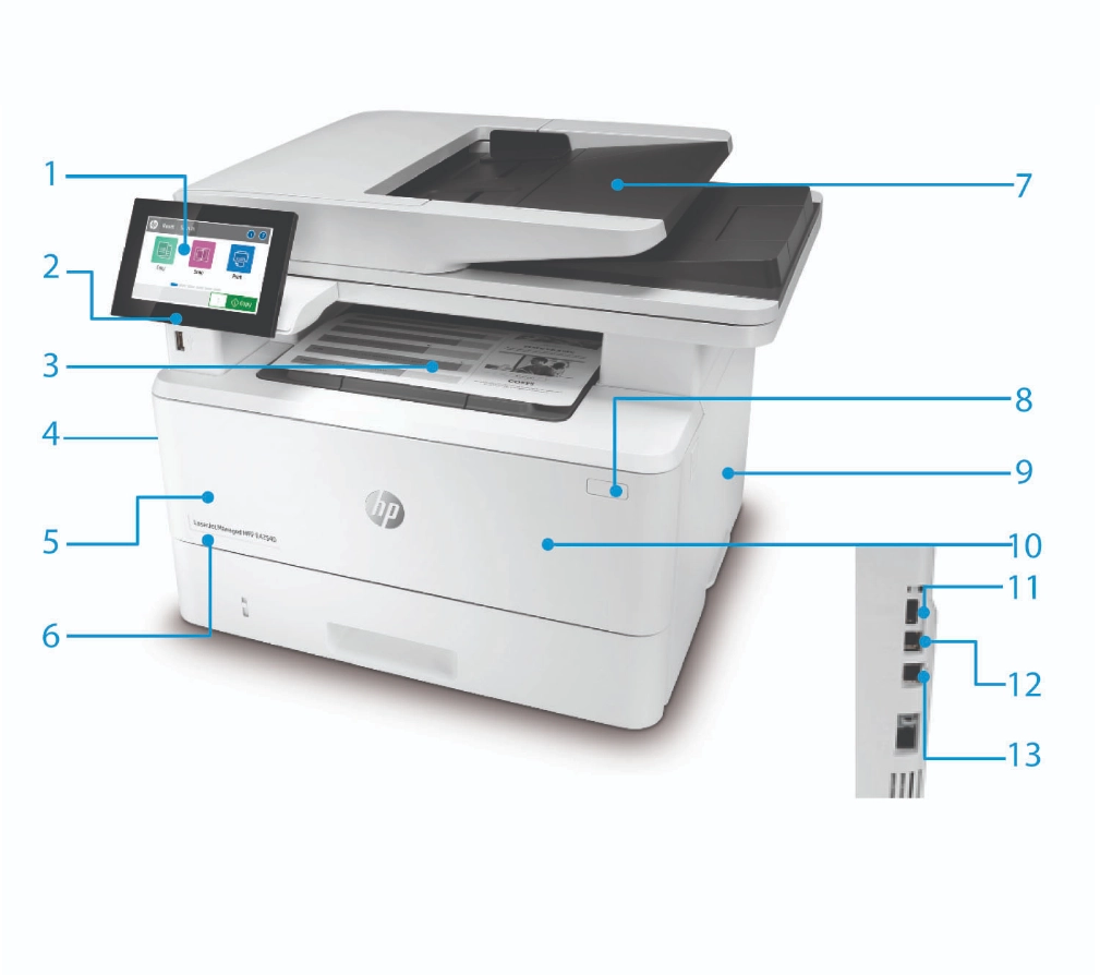 - Front door, access to Original HP Toner cartridges with JetIntelligence